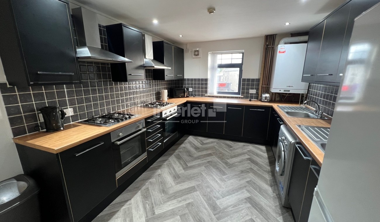 This large flat is situated in the heart of Cathays, close to the university, student union and Cathays train station. The property has a large, modern open plan kitchen/dinning area and a large separate living area. The property has 7 bedrooms. All big and spacious and fully furnished with beds, desks, chairs and wardrobes. The property has 3 modern bathrooms.