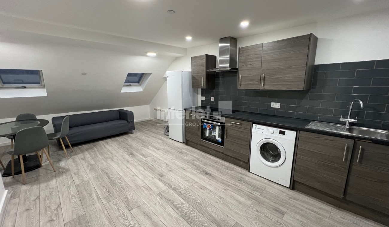 This modern and generously sized maisonette is offered fully furnished, including white goods. It features an open-plan kitchen and living area, two well-proportioned bedrooms furnished with beds and wardrobes, and a large bathroom.
