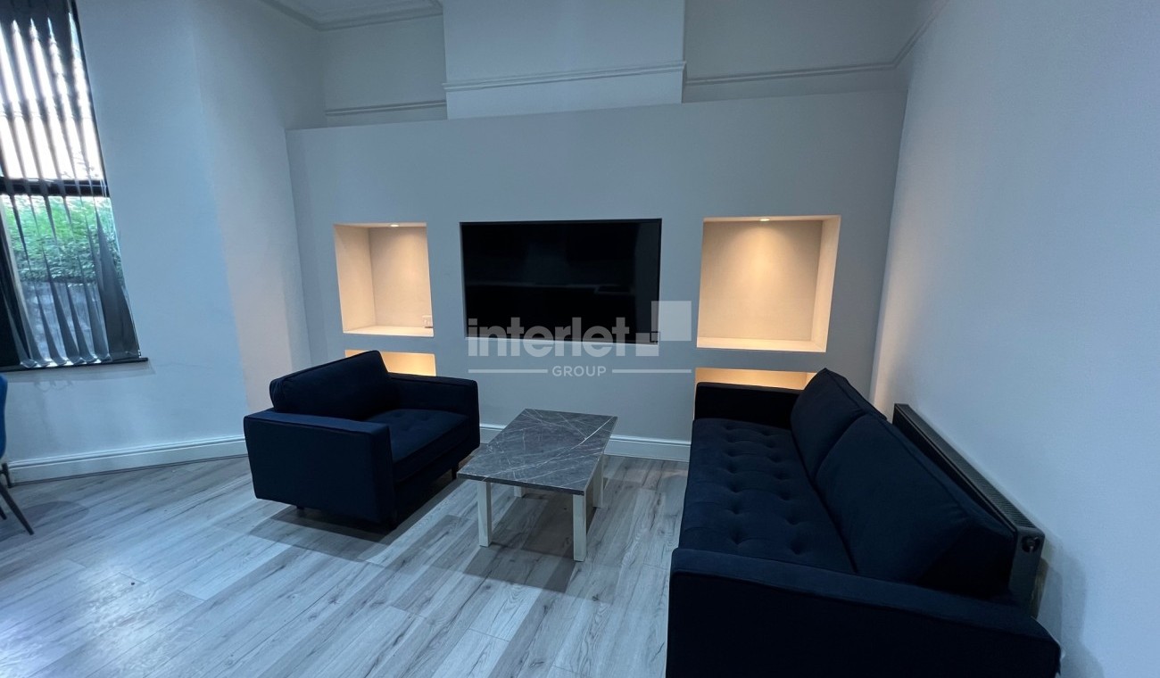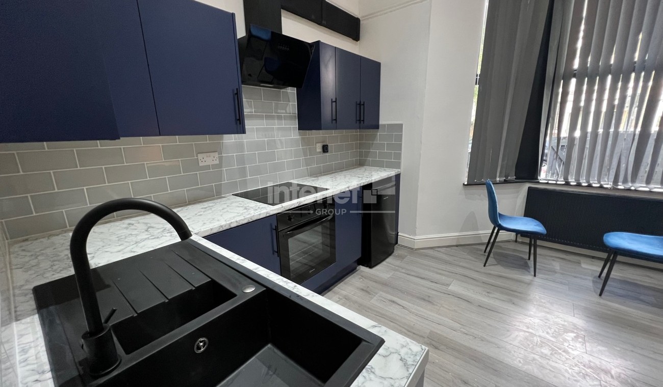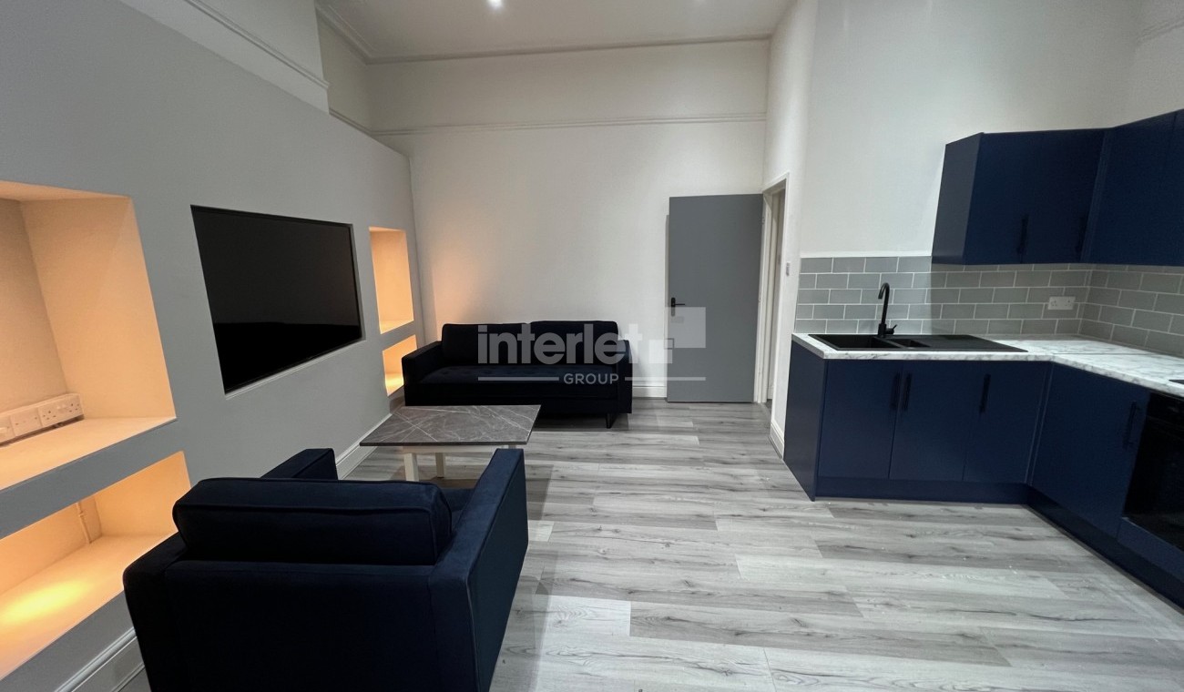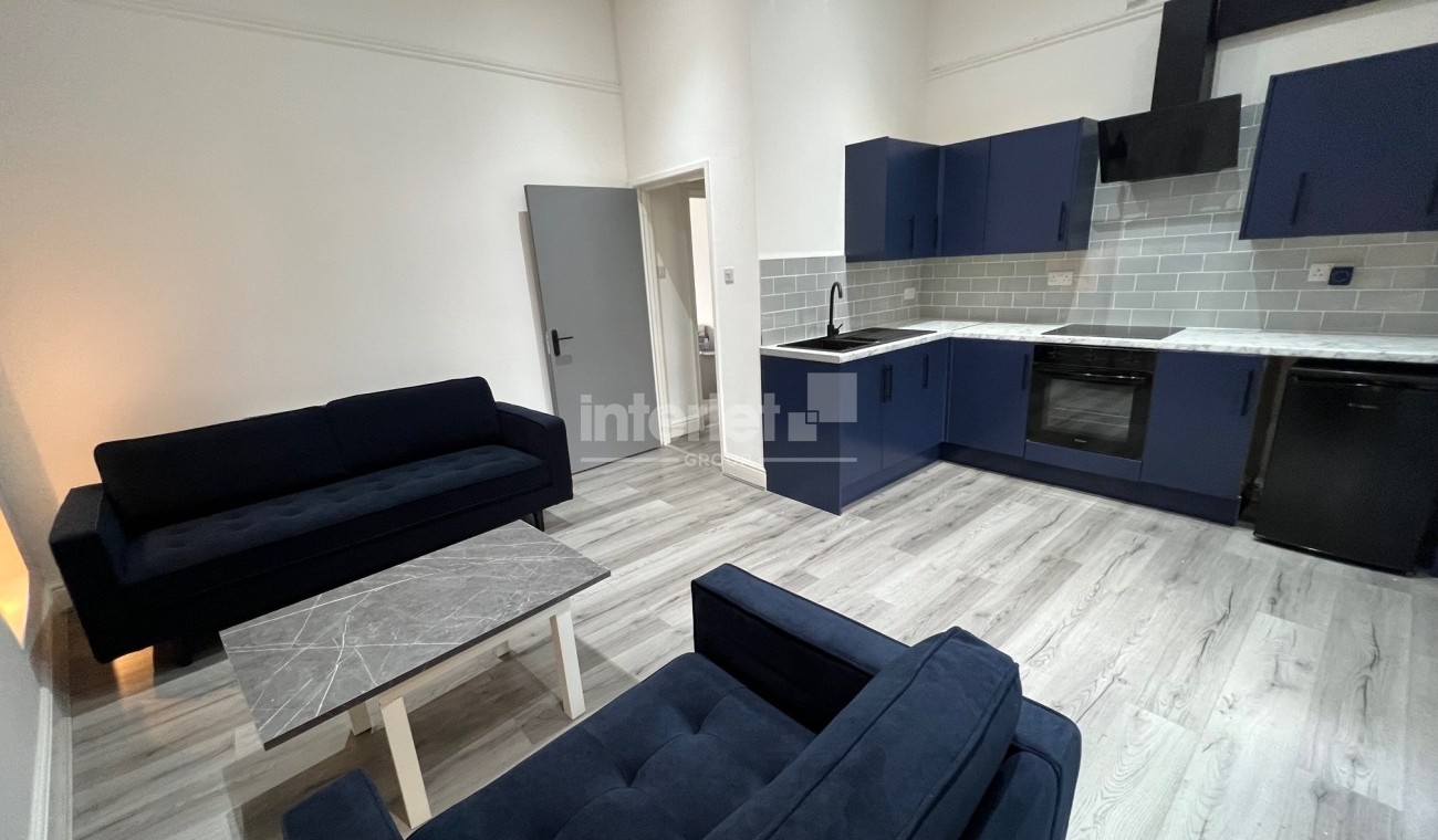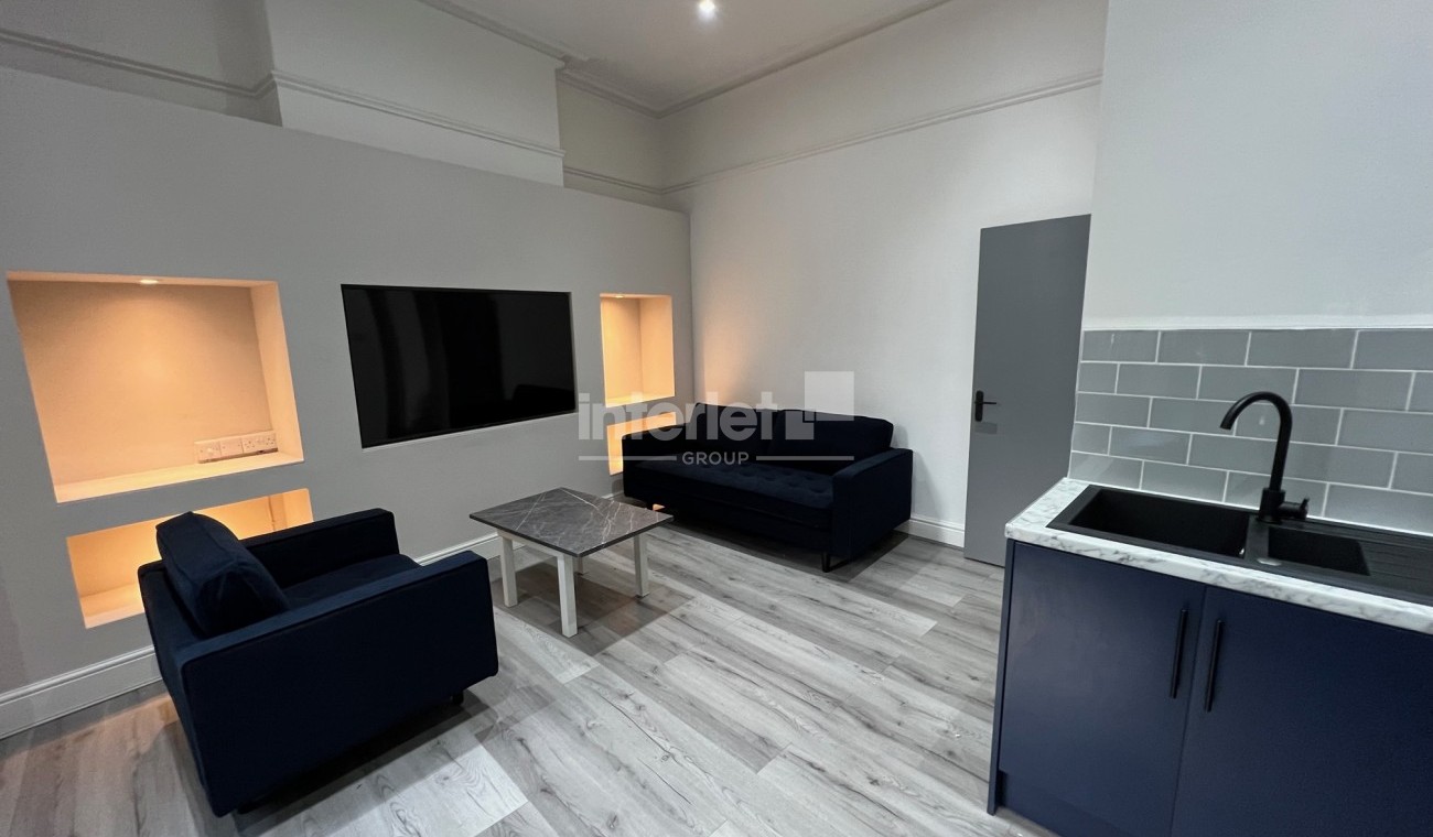 Modern one-bedroom flat available on Richmond Road, close to the city centre, universities and local amenities. Perfect for students or professionals. The property consists of an open-plan modern kitchen and lounge with leather sofas and is furnished with all white goods. There is an en-suite bedroom, with loads of space for storage, furnished with a bed, desk, chair and wardrobe. The property comes with off-street parking.
