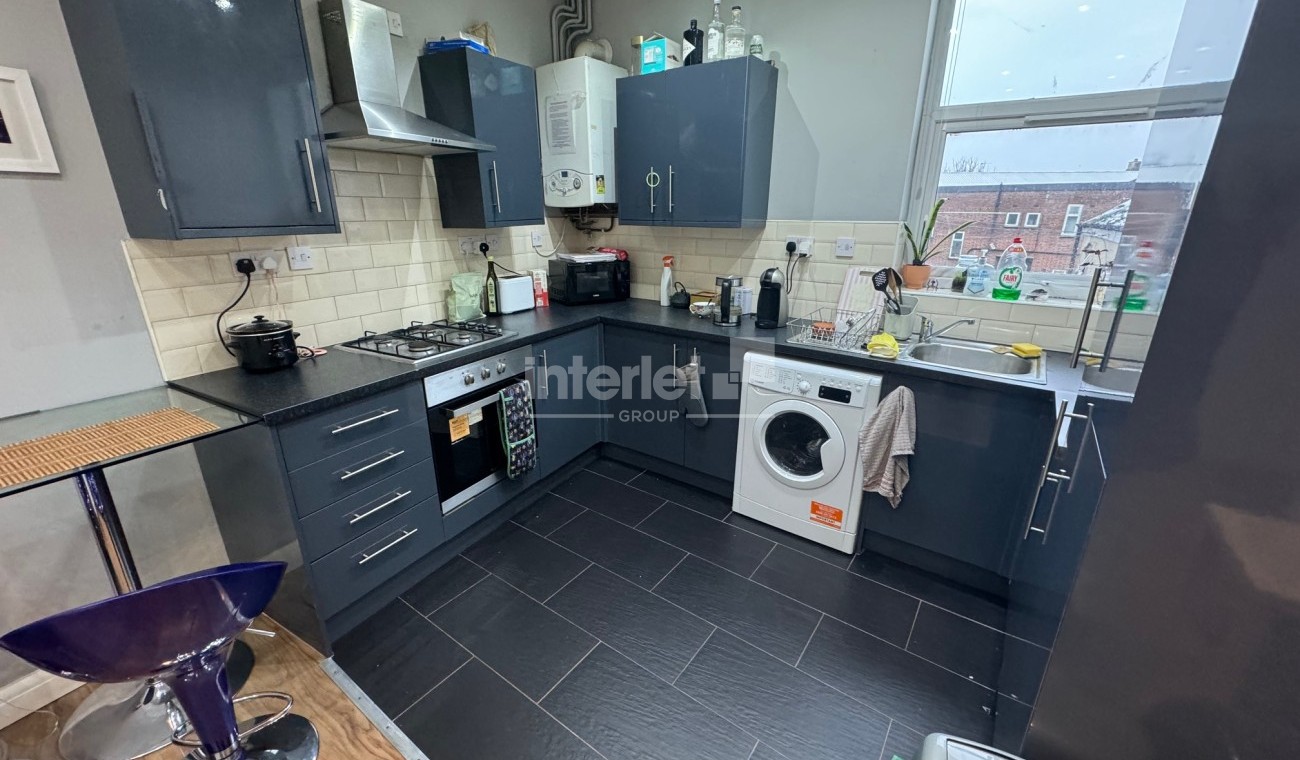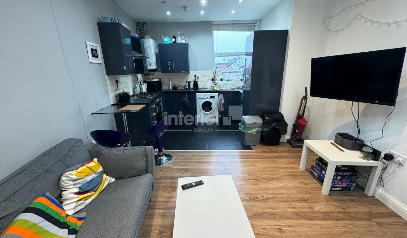 A modern 2 bedroom flat available, perfect for students or professionals. A bright and open 2 bedroom flat with an open plan kitchen and lounge with leather sofas.