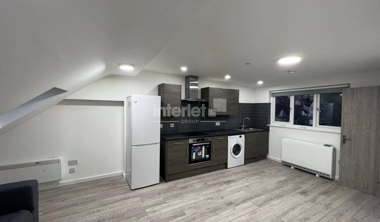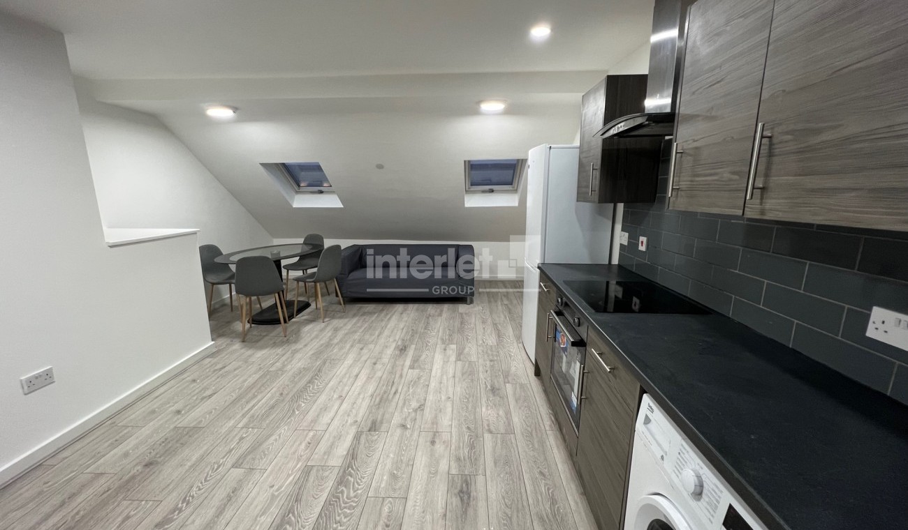 This modern and generously sized maisonette is offered fully furnished, including white goods. It features an open-plan kitchen and living area, two well-proportioned bedrooms furnished with beds and wardrobes, and a large bathroom.