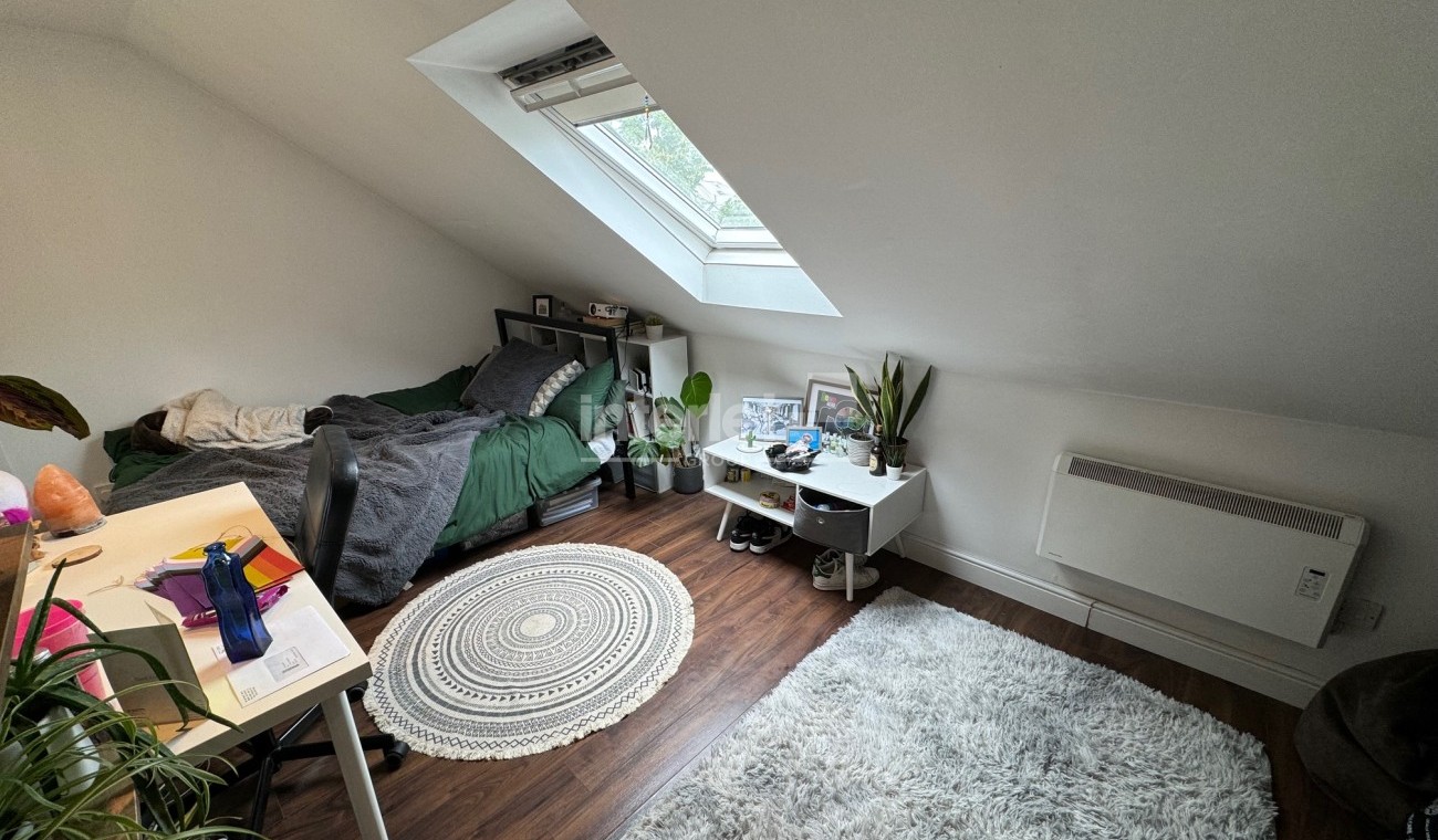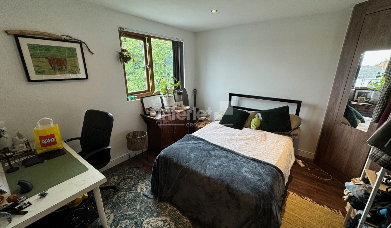 It is a two bedroom flat split over two floors, with living room and kitchen on the bottom floor and the bathroom and bedrooms on the floor above. Bedrooms include double beds, mattresses, a built in wardrobe with shelves, a desk and a chair. This property comes with a modern kitchen with fitted appliances including a washing machine and integrated fridge freezer. It also has access to a shared garden, off street parking as well as permit parking.