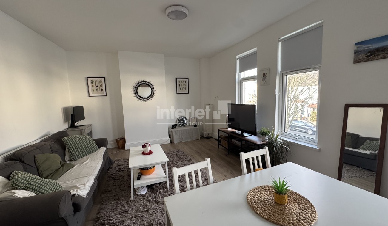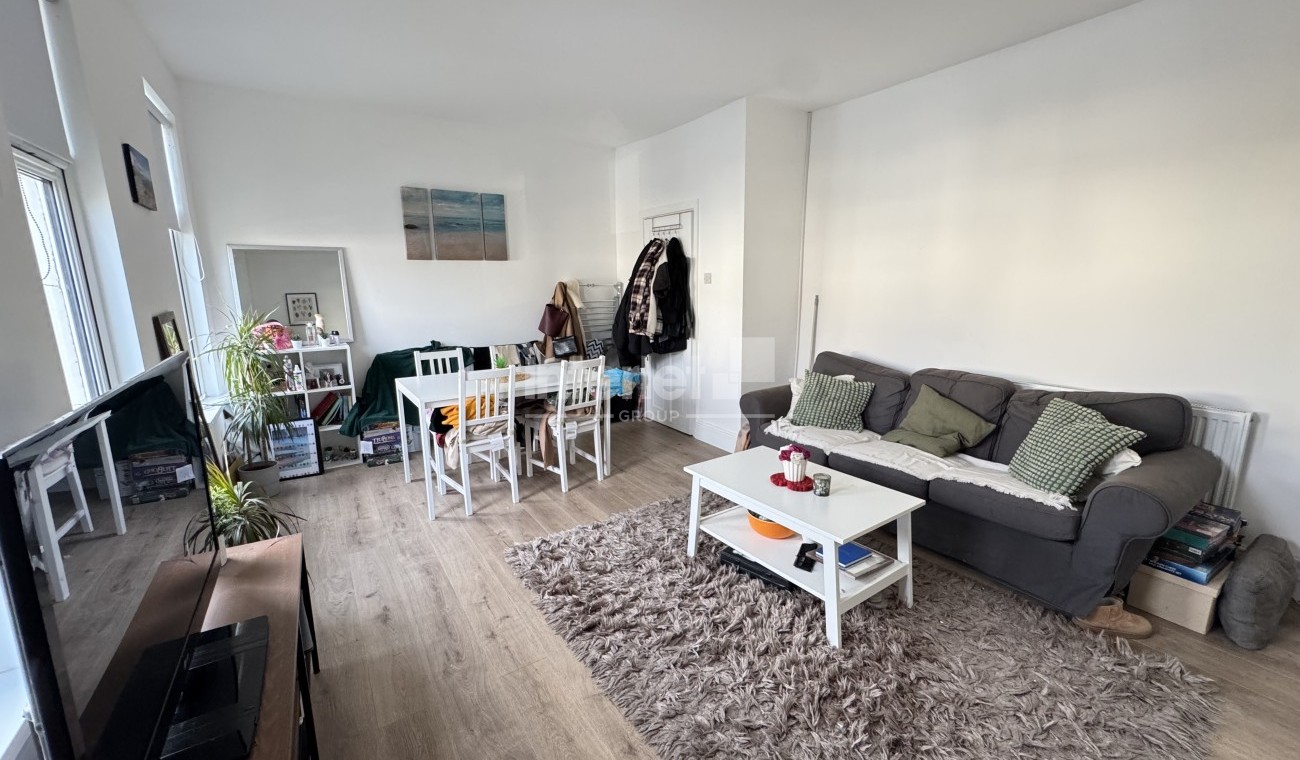 The property comprises a generous reception room, a separate fully fitted kitchen, and a large double bedroom, all thoughtfully arranged to provide comfortable and practical living. A contemporary shower room further enhances the accommodation. The apartment is offered fully furnished to a high standard, including a sofa, dining table and chairs in the living area, and a bed and wardrobe in the bedroom, ensuring a ready-to-move-in experience.
